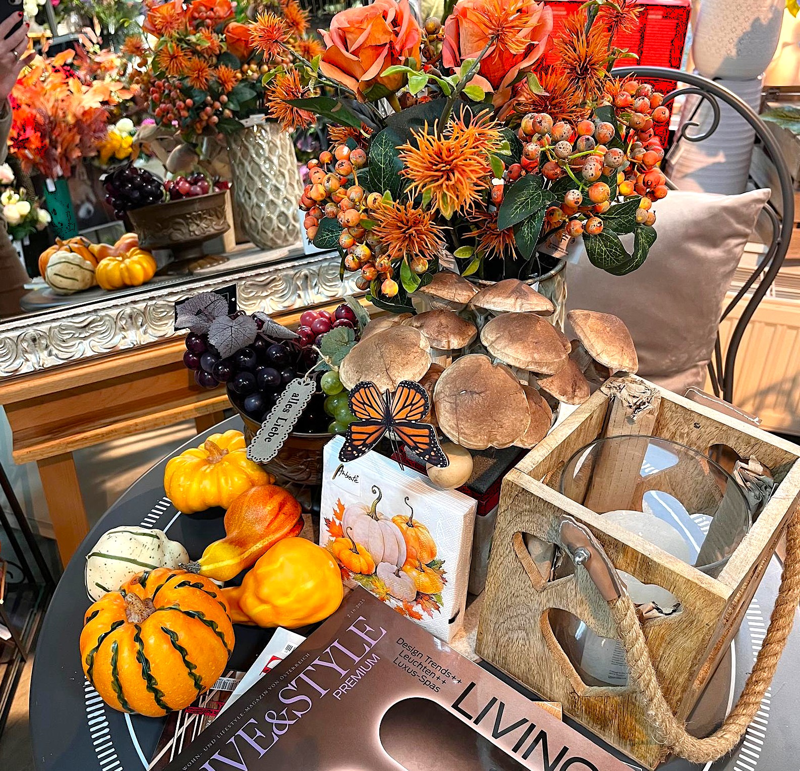 Der Herbst lockt mit neunen Deko-Inspirationen: Künstliche Blumenarrangements verzaubern den Übergang zur kühleren Jahreszeit.