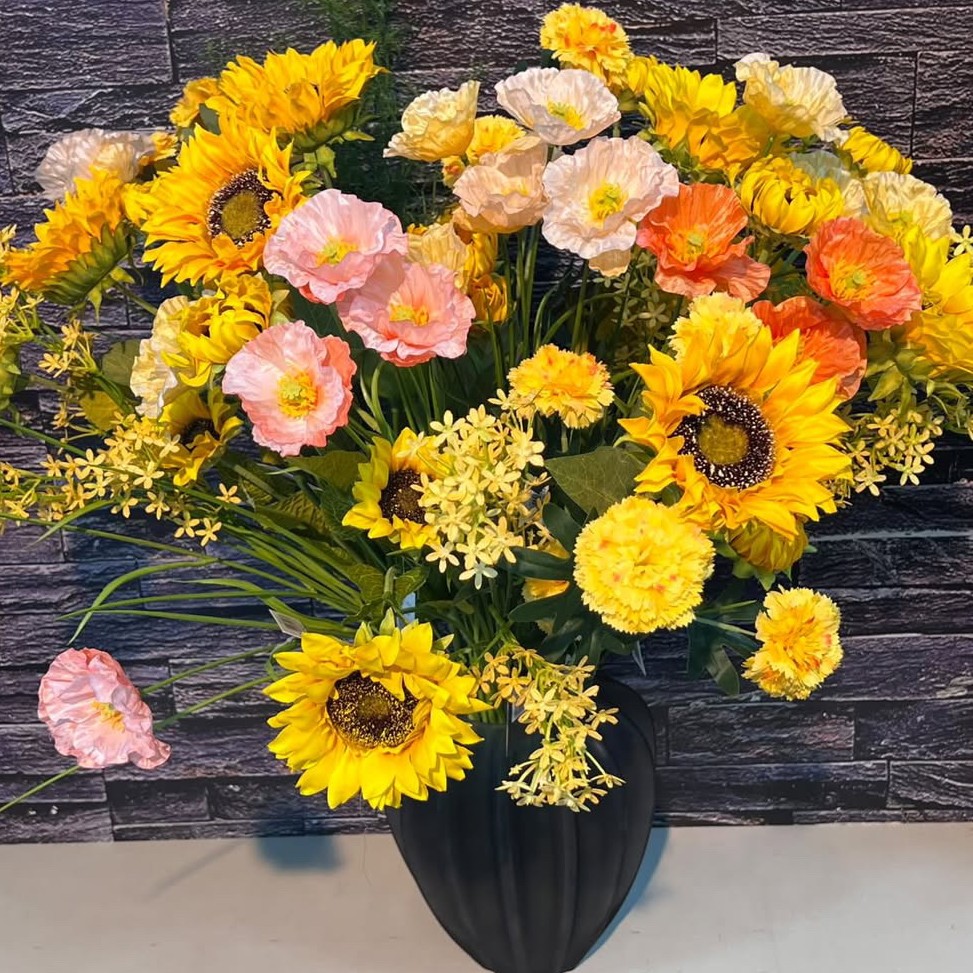 Wir bieten Ihnen hochwertige Seidenblumen, die dem Original optisch sehr nahe kommen. Dank der hervorragenden Qualität sind sie oftmals nur schwer von echten Blumen zu unterscheiden - allerdings viel pflegeleichter. Je nach Saison warten eine Vielzahl unterschiedlicher Rosen, Tulpen, Nelken, Flieder, Gerbera, Orchideen, Lilien, Primeln, Geranien, Petunien, Magnolien, Lilien, Mohn-, Korn- und Sonnenbumen, Hortensien, Kirschblüten, Margeriten, Chrysanthemen, Beeren oder Herbstlaub, aber auch Weinreben, diverse Gräser, Früchte, Pilze und noch viel mehr .... darauf, von Ihnen entdeckt zu werden!